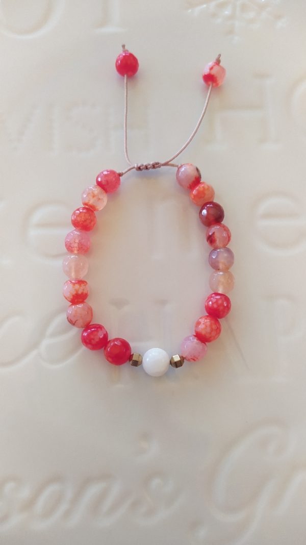 Βραχιόλι από ημιπολύτιμες χάντρες αχάτη, αιματίτη και φίλντισι. Το μέγεθος αυξομειώνεται.